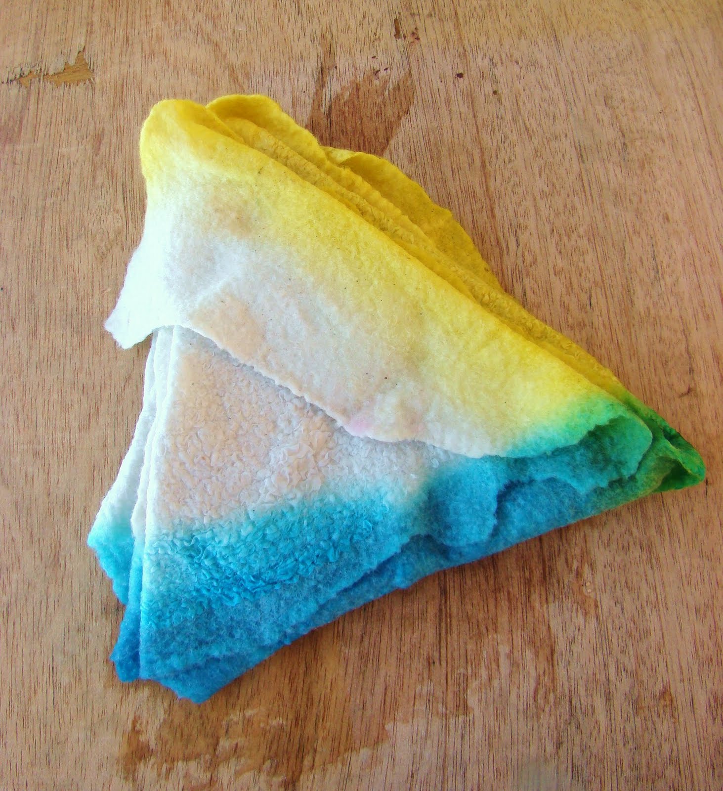 So many things to make…I’ll write more on the folding techniques, plus put together my tutorial on nuno felting this week…and then…the scarves I had set out to make at the beginning of this story…inspired by Els at Fiber Rainbow’s Kaffe bag!